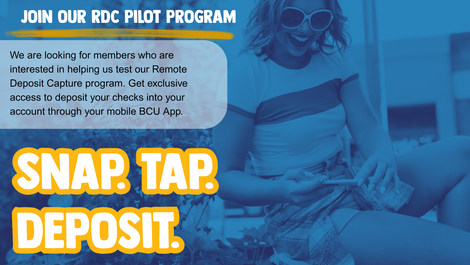 Brightview Federal Credit Union is testing Remote Deposit Capture (RDC), a mobile feature that allows you to deposit checks simply by taking a photo in our mobile app. This limited pilot will help us validate usability, controls, and performance before offering RDC to all members.